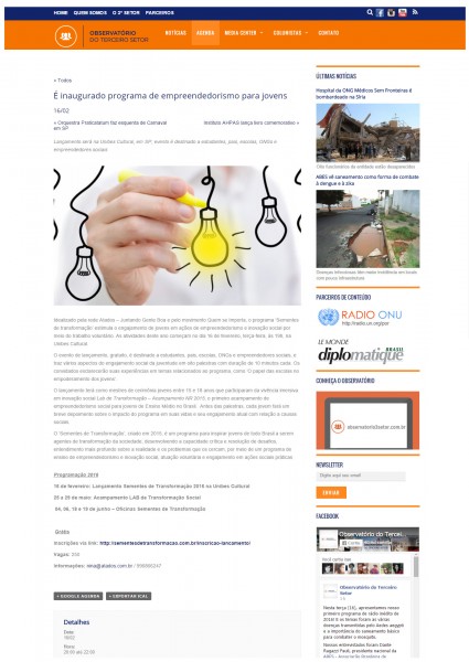 A Locomotiva Cultural elaborou uma estratégia de assessoria de imprensa para a divulgação do lançamento do programa no ano de 2016.
